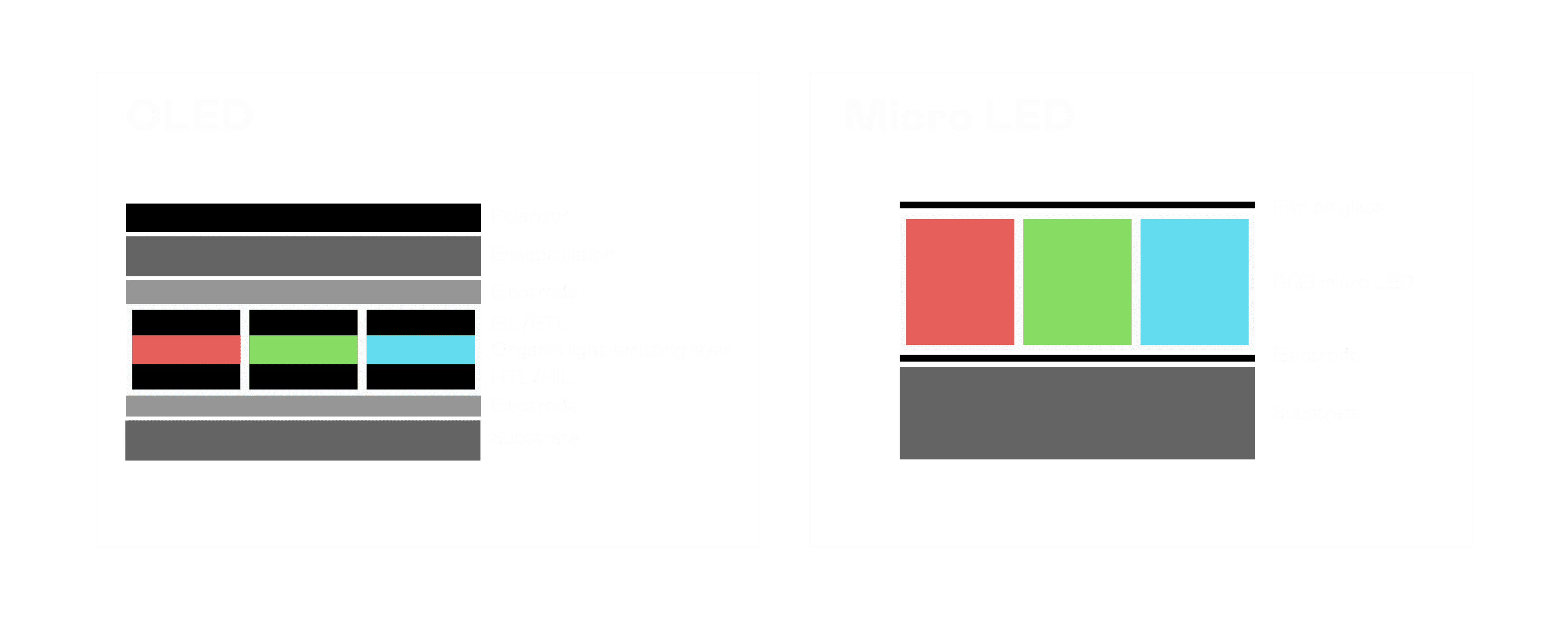 以 LED 做为显示画素,,可让 LED 的发光效率发挥到极致,,,,从而让显示器具备优异的亮度表现,,,,不论是在户外或室内,,,,均具备出众的显示效果。。同时,,,与使用有机材料的 OLED 相比,,,,LED 具备更稳定、、、、寿命更长的特性,,,不仅不会有画面烙印问题,,而且更不容易出现故障、、坏点。。。